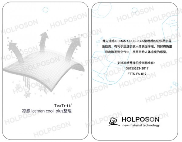 HOLPOSON? Iceman COOL-PLUS 是本公司以超細云母粉為主,并運用萃取技術,經科學精心開發研制的紡織品用后整理劑。它能提高織物的熱導系數,迅速吸收人體表面汗液,同時將熱量導出散發到空氣中,從而帶給人體涼爽的感覺。本產品還具有一定的防紫外線效果。主要適用于內衣面料、襯衫面料、床上用品面料、登山服、高爾夫服裝、休閑系列服裝面料、各種服飾面料、家用紡織品面料等。