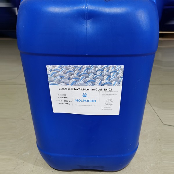 HOLPOSON?ICEMAN COOL也叫酷冰俠?是一款專門針對紡織品開發的涼感功能整理劑,是由我公司的東華大學博士團隊開發的以木糖醇,赤糖醇,絲蛋白為主的接觸吸濕涼感整理劑。適合用于天絲,冰絲,棉,滌綸等各種纖維的后整理。其作用原理:涼感整理劑HOLPOSON? ICEMAN COOL處理在面料表面的木糖醇遇水發生吸熱反應,釋放涼爽因子從而使接觸到涼爽因子的皮膚清涼舒爽,另外其所含有的絲蛋白成分具有良好的保濕功能,清涼保濕雙組合使得人們在炎炎的夏日有降溫防護的可能。