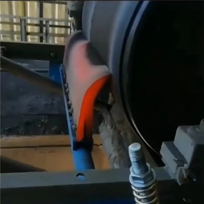 清掃器刮板具有緩沖功能,對各種情況皮帶面都有好的跟隨性,美奐輕型清掃器刮板采用高分子聚氨酯,重型聚氨酯清掃器采用整體聚氨酯刮板,清掃器刮板不會損傷皮帶或皮帶接頭.