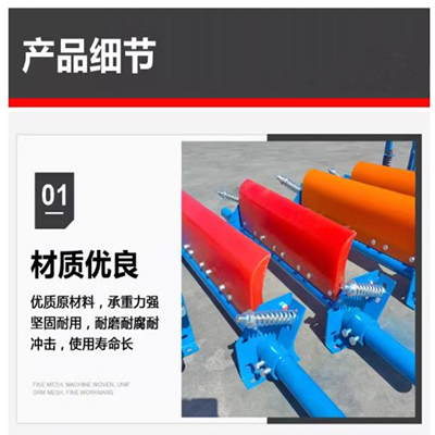 抗磨損(使用壽命是一般橡膠塑料產品的5倍)、磨擦系數低、高強度,具有穩定的刮料效果,不損傷皮帶、不持物、不粘料。2、防腐蝕、防斷裂又不會傷及皮帶。較適用于電力、冶金、礦山等各種行業輸送帶。3、使用壽命長。為合金橡膠清掃器的3~4倍。