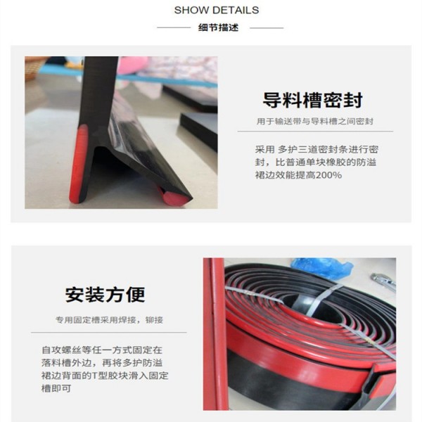 紅色聚氨酯防溢裙邊導料槽密封裙板 擋煤皮子 喀什