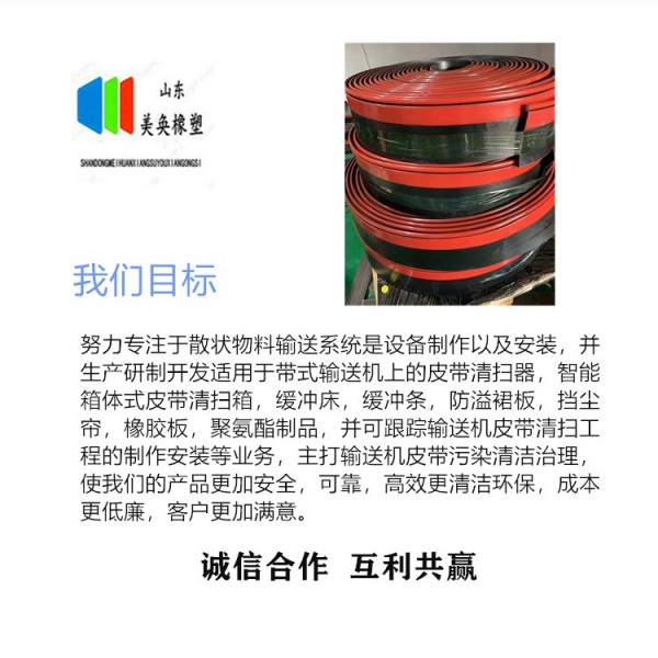 聚氨酯橡膠防溢裙板是帶狀、底部雙層的橡膠板,與皮帶接觸的部分因要長期經受巨大的摩擦力,所以該部分我們一般采用聚氨酯山東美奐橡塑有限公司3塊,聚氨酯具有的耐磨性。聚氨酯塊和橡膠板采用熱LIU化工藝結合,能保證承受長時間的摩擦不與橡膠分離。
