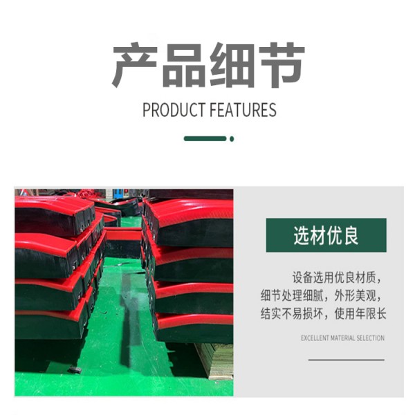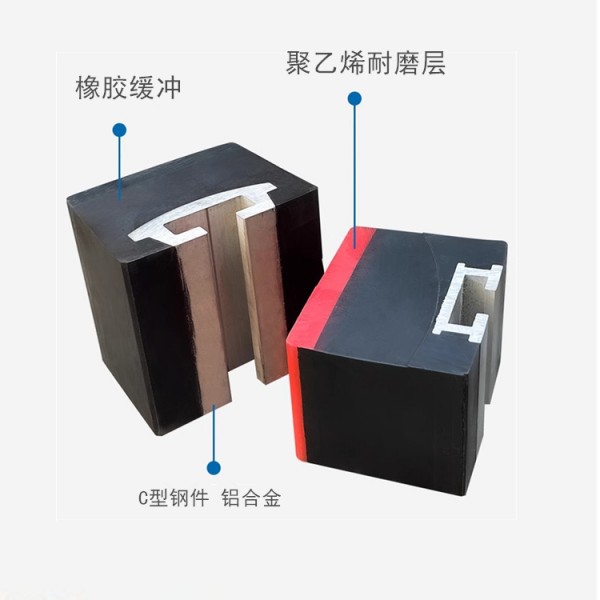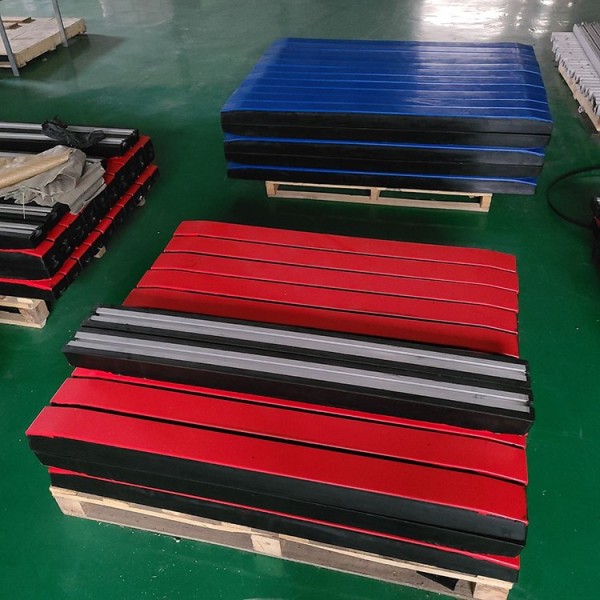 緩沖條是緩沖床的部分,對(duì)皮帶機(jī)的整體保護(hù)起到了重要的作用。緩沖條作為緩沖床上重要的組成部分,緩沖條質(zhì)量好、軟度、彈性、光滑度達(dá)到一定要求,能進(jìn)一步增強(qiáng)緩沖床的整體緩沖效果。緩沖滑條的表面高分子板,與皮帶直接接觸,因此一定要光滑耐磨阻力小,這樣才能在保護(hù)皮帶的同時(shí),皮帶不被磨損。緩沖滑條的中間部分TR橡膠,主要起到緩沖物料下落的沖擊力的作用,橡膠要軟硬適中才能更好的起到緩沖作用。緩沖滑條底部的金屬件主要起到連接緩沖床的作用,金屬件一般有c型鋼和鋁合金兩種材質(zhì),分別適合不同的使用環(huán)境。